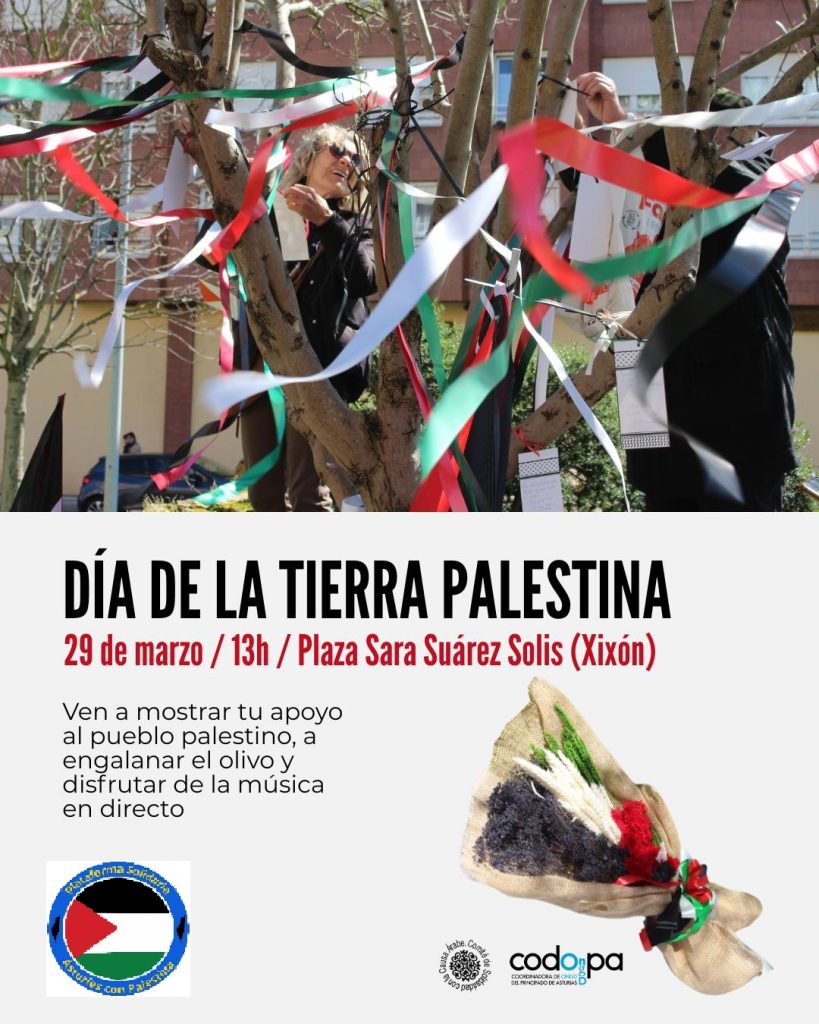 Estamos en vísperas del día de la Tierra palestina. Hay actividades ante los olivos en Xixón este domingo, en Langreo y Oviedo el lunes. Y tras los dos últimos plantados, en Pedagogía y en Lena, se preparan otros en Vegadeo, en Luarca, en Santolaya de Oscos y en Soto del Barco.