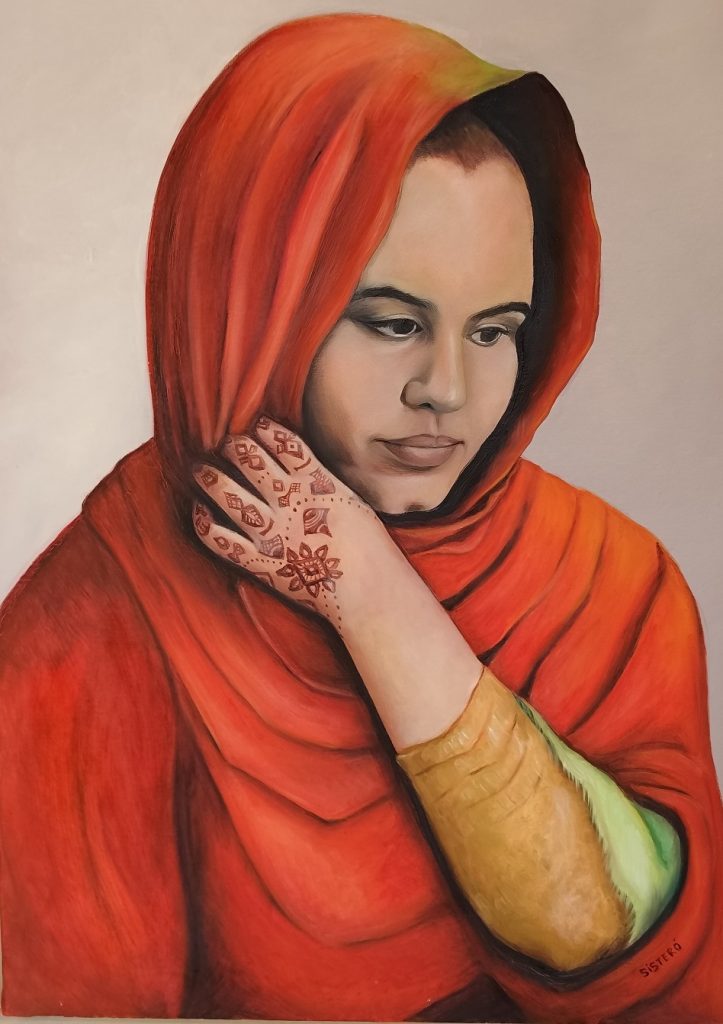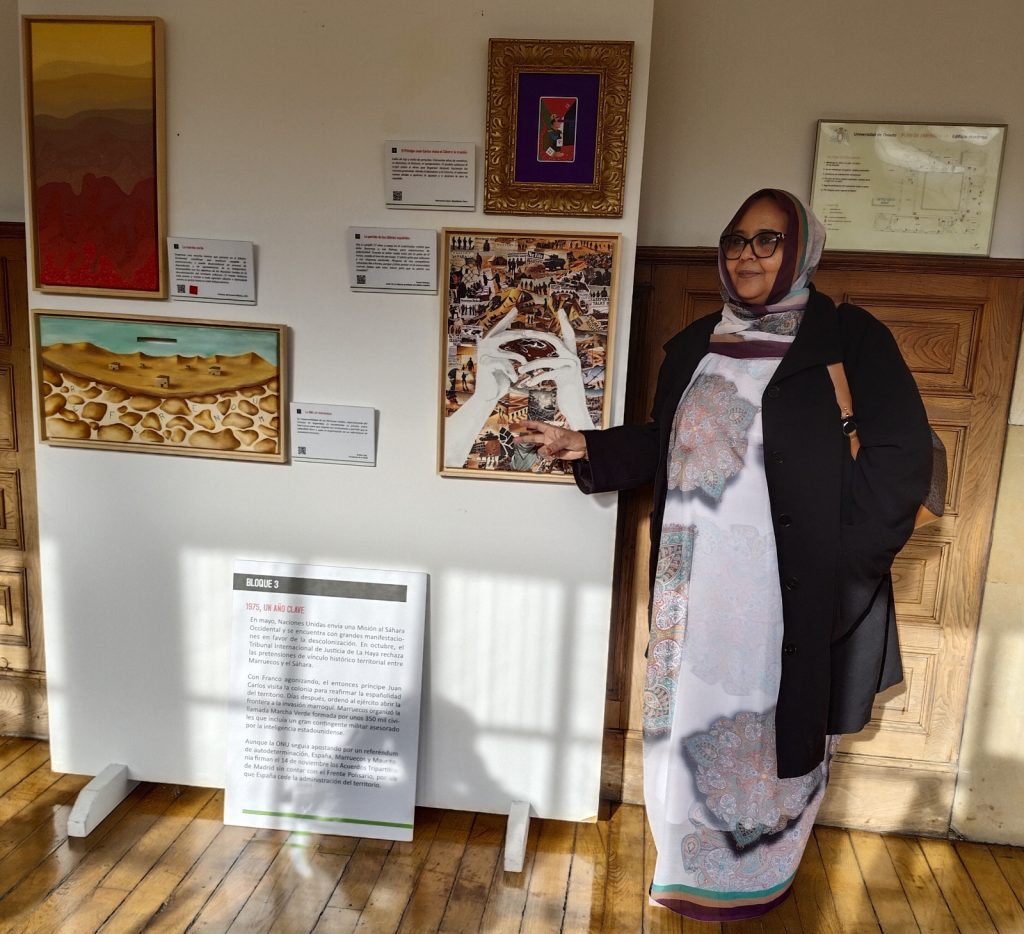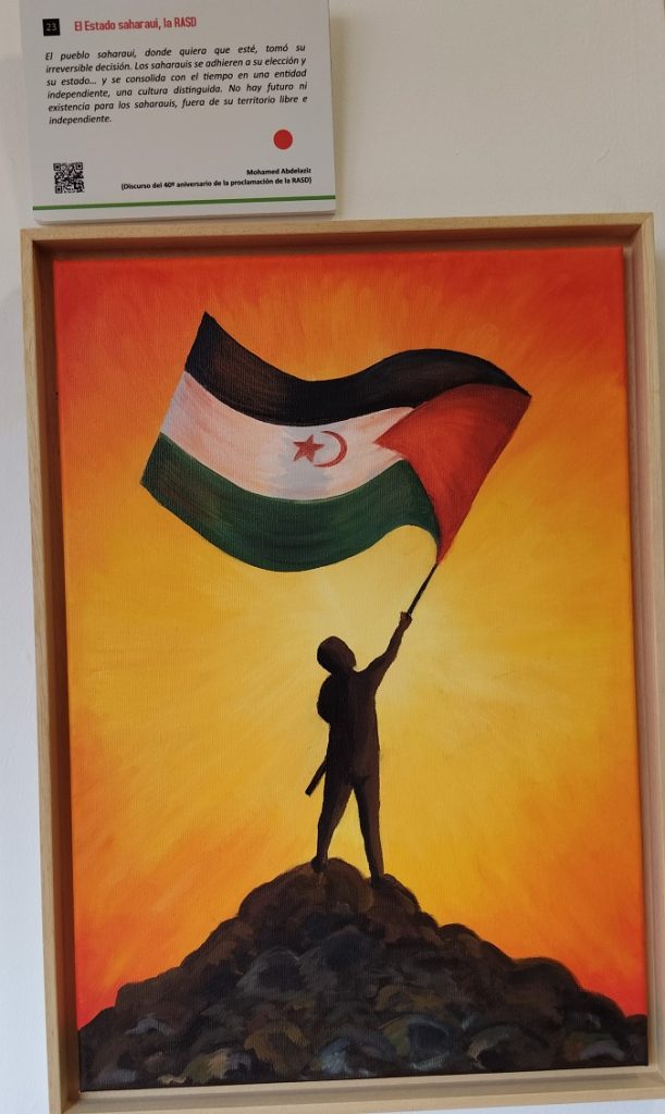 Una maravillosa exposición pictórica que nos ofrece cuarenta y nueve pinceladas a la historia del conflicto, una por año, cuarenta y nueve miradas jóvenes a cuarenta y nueve temas que han ido forjando la historia más reciente del pueblo saharaui, cuarenta y nueve reflexiones distintas, fruto de un denodado esfuerzo de interpretación personal de temas como el éxodo, la traición, el papel de la política, la tradición, el olvido o el expolio de los recursos naturales entre otros.