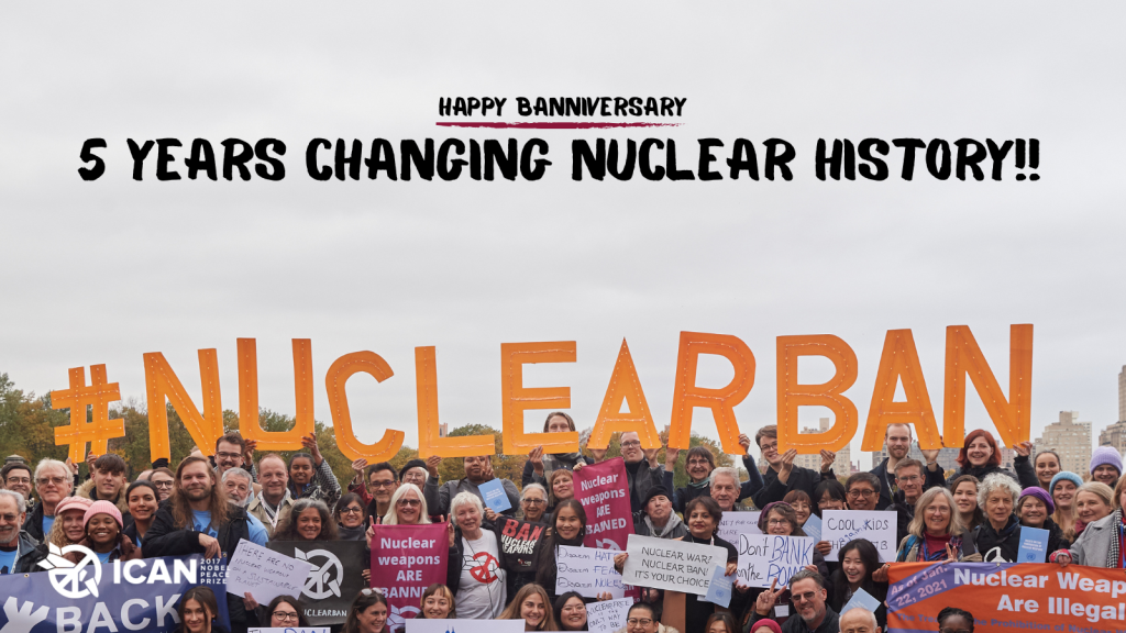 En todo el mundo conmemoramos cinco años desde que el Tratado sobre la Prohibición de las Armas Nucleares entró en vigor como derecho internacional.