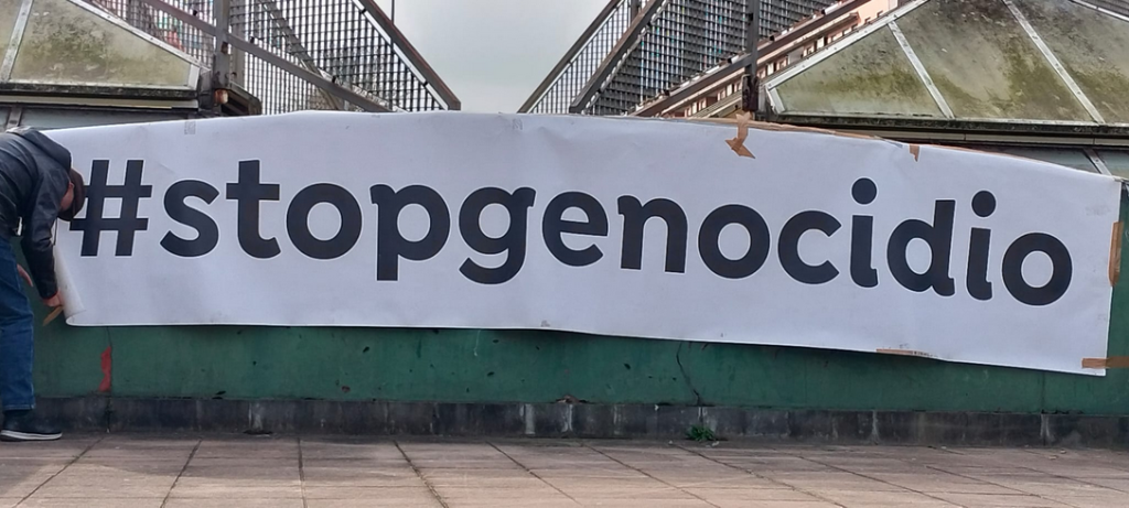 Hoy aquí hemos priorizado algunas empresas de multimillonarios que se hacen de oro con el genocidio. Está en nuestra mano no colaborar con ellos.