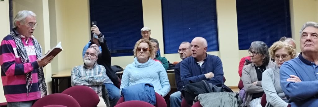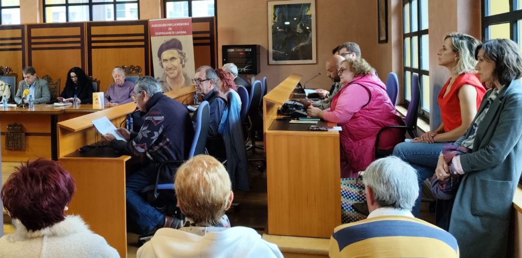 Lectura de poemas de Gaspar (ahora su libro Cantos de Amor y Guerra traducido al asturiano, en ‘Cantares d’amor y guerra’, por la poetisa Lourdes Álvarez y editado por l’Academia de la Llingua Asturiana ).