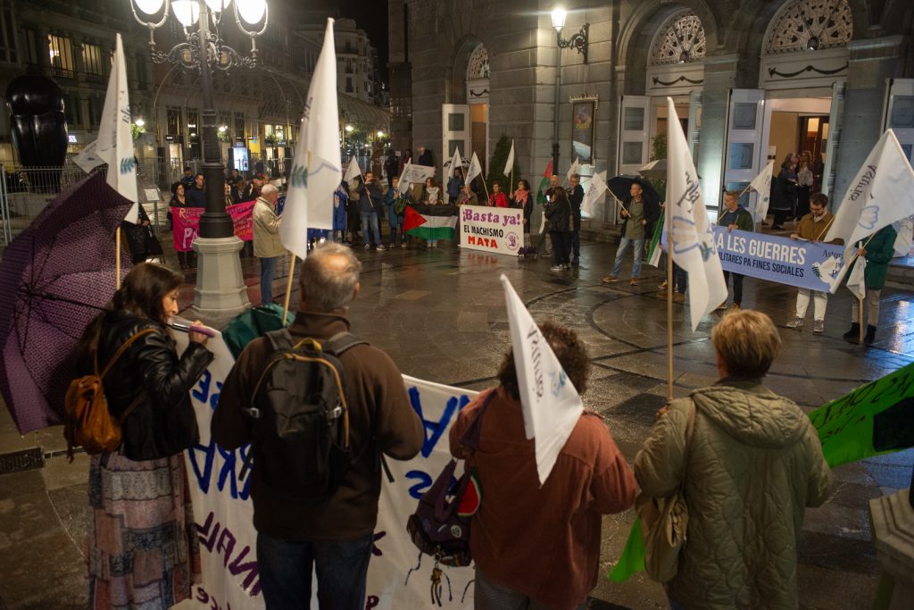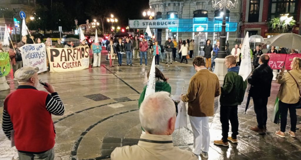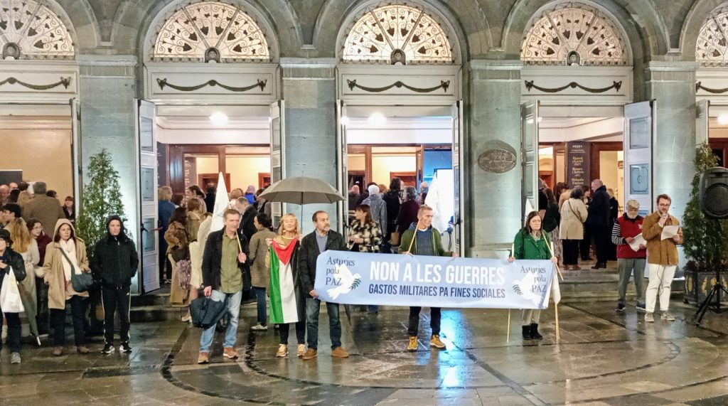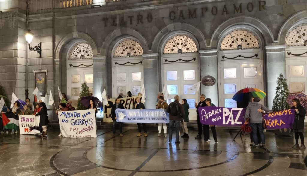 Nos encontramos de nuevo aquí, frente al Teatro Campoamor de Uviéu tras el éxito de la manifestación del 21 de septiembre en Xixón, para seguir manteniendo viva la movilización por la Paz y la Justicia, en un mundo donde los tambores de guerra suenan con cada vez más fuerza.