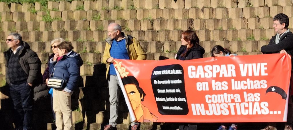 En memoria de Gaspar, declaramos nuestro compromiso con su coherencia radical: exigimos empleo y vivienda digna, combatiendo la precariedad laboral y la especulación inmobiliaria hasta que sean derechos reales; defendemos una transición ecosocial justa que revierta la insostenibilidad y beneficie a vulnerables, no a grandes capitales; se debe impulsar la solidaridad internacionalista contra injusticia global, deuda y guerra, haciendo ver la interdependencia que nos relaciona a todos como acción política. Proponemos a todos rechazar el militarismo destructivo y revitalizar Acciones por la Paz contra colonialismo y la dominación y asumimos la consigna de “gastos militares para derechos sociales” y que sea ella quien inspire las políticas y los compromisos para conseguir un orden más justo;